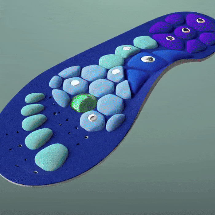 Las plantillas magnéticas BidsStep™ han sido diseñadas para dar soporte a vuestros patrones de movimiento desde la base. Contienen imanes estratégicamente posicionados que generan campos magnéticos sutiles.